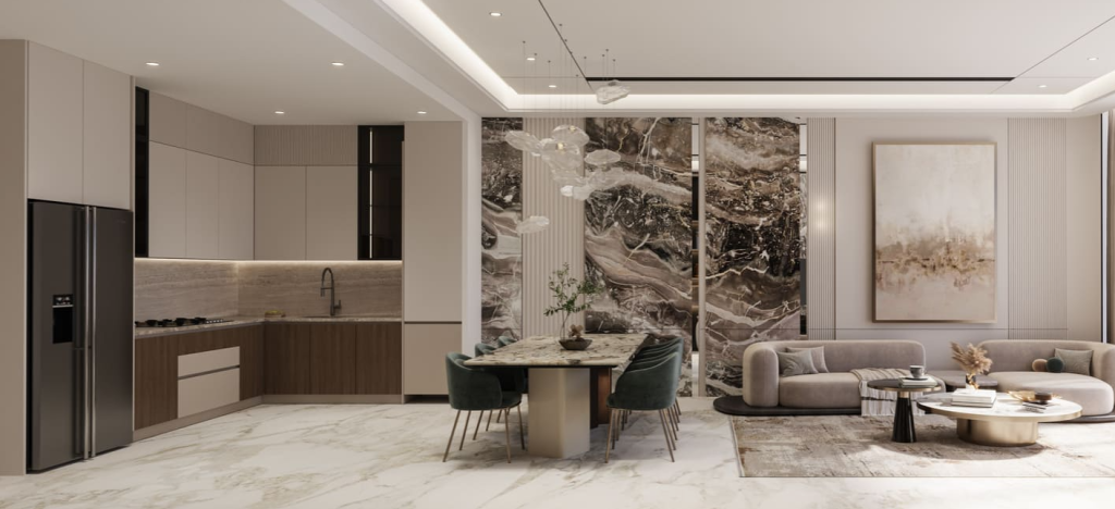 The interiors focus on comfort and sophistication. Residents enjoy modern kitchens with high-end appliances and spa-like bathrooms that invite relaxation. Additionally, smart home systems come pre-installed, offering modern convenience at your fingertips. While the apartments are delivered unfurnished, their high-quality finishes make customization easy and stylish.